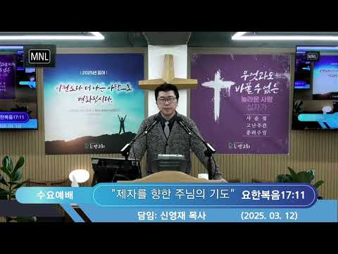 2025. 03. 12. 하얀교회 수요예배 설교 설교제목: "제자를 향한 주님의 기도" 설교본문: 요한복음17:11 설 교 자 : 신영재 담임목사