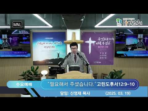 2025. 03. 19. 하얀교회 수요예배 설교 설교제목: "필요해서 주셨습니다" 설교본문: 고린도후서12:9-10 설교자: 신영재 담임목사