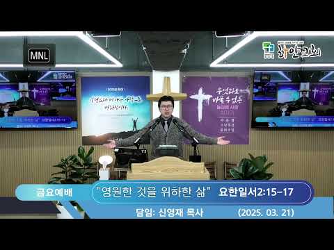 2025. 03. 21. 하얀교회 금요예배 설교 설교제목: "영원한 것을 위하여" 설교본문: 요한일서2:15-17 설교자: 신영재 담임목사