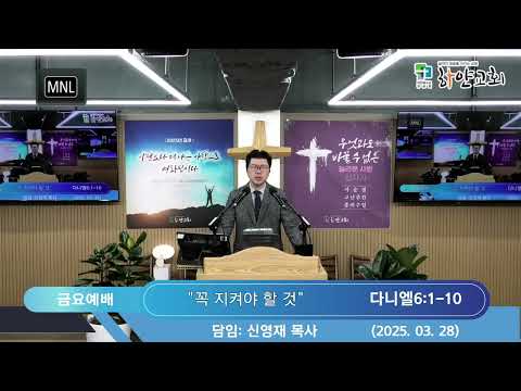 2025. 03. 28. 하얀교회 금요예배 설교 설교제목: "꼭 지켜야할 것" 설교본문: 다니엘6:1-10 설교자: 신영재 담임목사