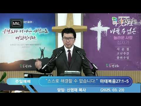 2025. 03. 23. 하얀교회 주일예배 설교 설교제목: "스스로 해결할 수 없습니다." 설교본문: 마태복음27:1-5 설 교 자: 신영재 담임목사