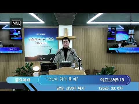 2025. 03. 07. 하얀교회 금요기도회 설교 설교제목: "고난이 찾아 올 때" 설교본문: 야고보서05:13 설교자: 신영재 담임목사