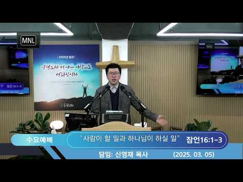 2025. 03. 05. 하얀교회 수요예배 설교설교제목 : 사람이 할 일과 하나님이 하실 일설교본문 : 잠언16:1-3설 교 자 : 신영재목사