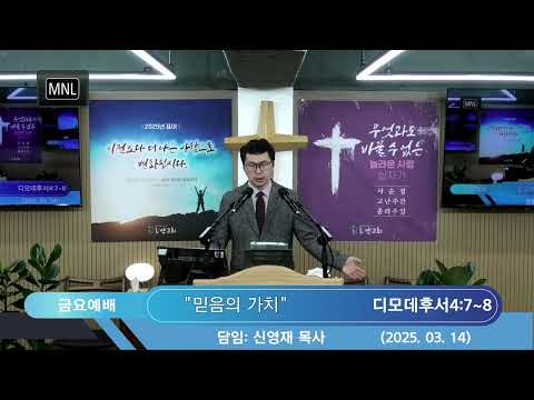 2025년 3월14일 금요예배설교제목 : 믿음의 가치설교본문 : 디모데후서4:7-8설 교 : 신영재목사