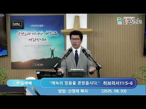 2025. 08. 03. 하얀교회 주일예배 설교 설교제목: "에녹의 믿음을 본받읍시다." 설교본문: 히브리서11:5-6 설교자: 신영재 담임목사