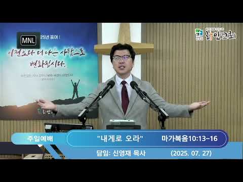 2025. 07. 27. 하얀교회 주일예배 설교 설교제목: "내게로 오라" 설교본문: 마가복음10:13-16 설교자: 신영재 담임목사